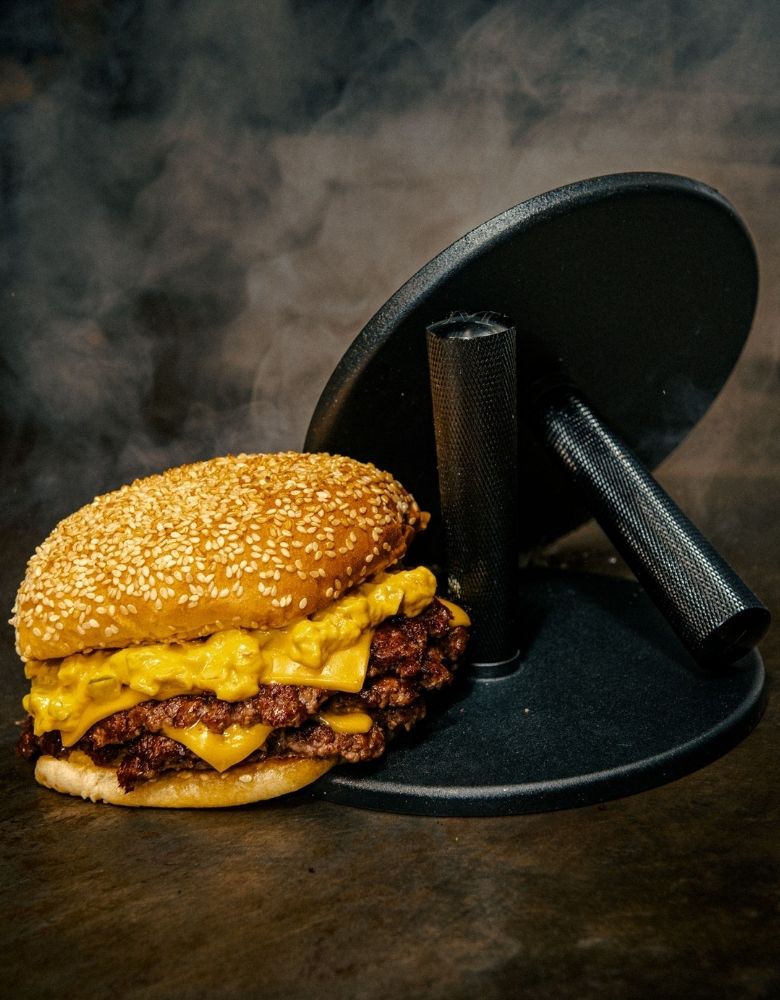 Ideal for crafting the perfect smash burger, this grill press also excels at grilling steaks, pressing spatchcock chicken, crisping grilled cheese sandwiches, and searing vegetables with even heat and beautiful char. Its solid construction helps lock in flavor while cutting down cooking time.