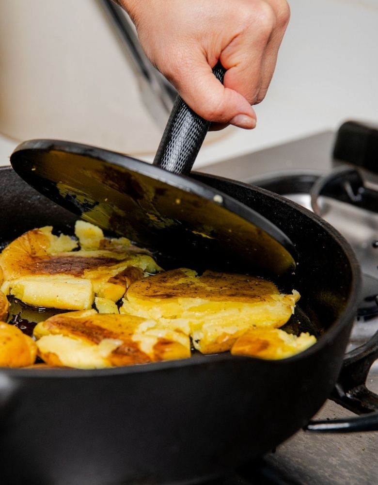 To keep your Matheson Grill Press performing at its best, rinse it with warm water after each use and avoid soap or soaking. Dry it thoroughly, then apply a light coat of oil to protect the surface. With proper care, this pan will naturally build a non-stick finish and last for generations. Find more care tips here.